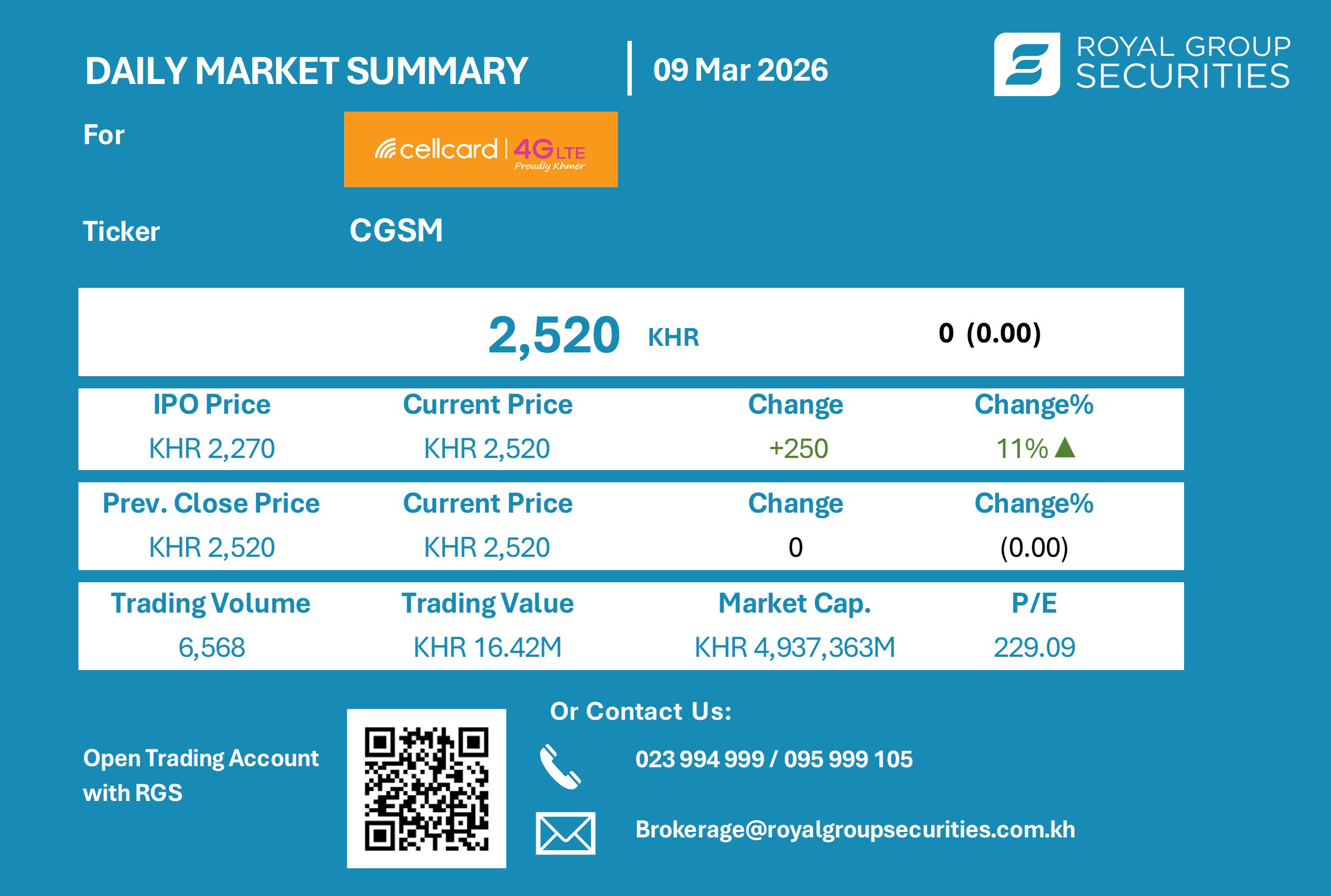 Open a trading account with us to purchase stocks in Cambodia Securities Exchange (CSX).